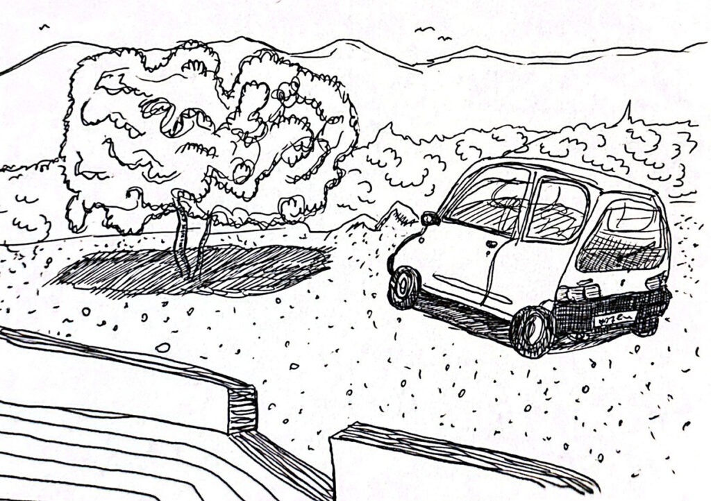 Le strade che percorro sembrano essere state disegnate da un bambino e costruite da suoi simili: strette, irregolari, con curve e incroci impossibili da fare a una velocità normale, tanto che l’impressione che ho è di percorrerle sempre in contromano e dal lato sbagliato.